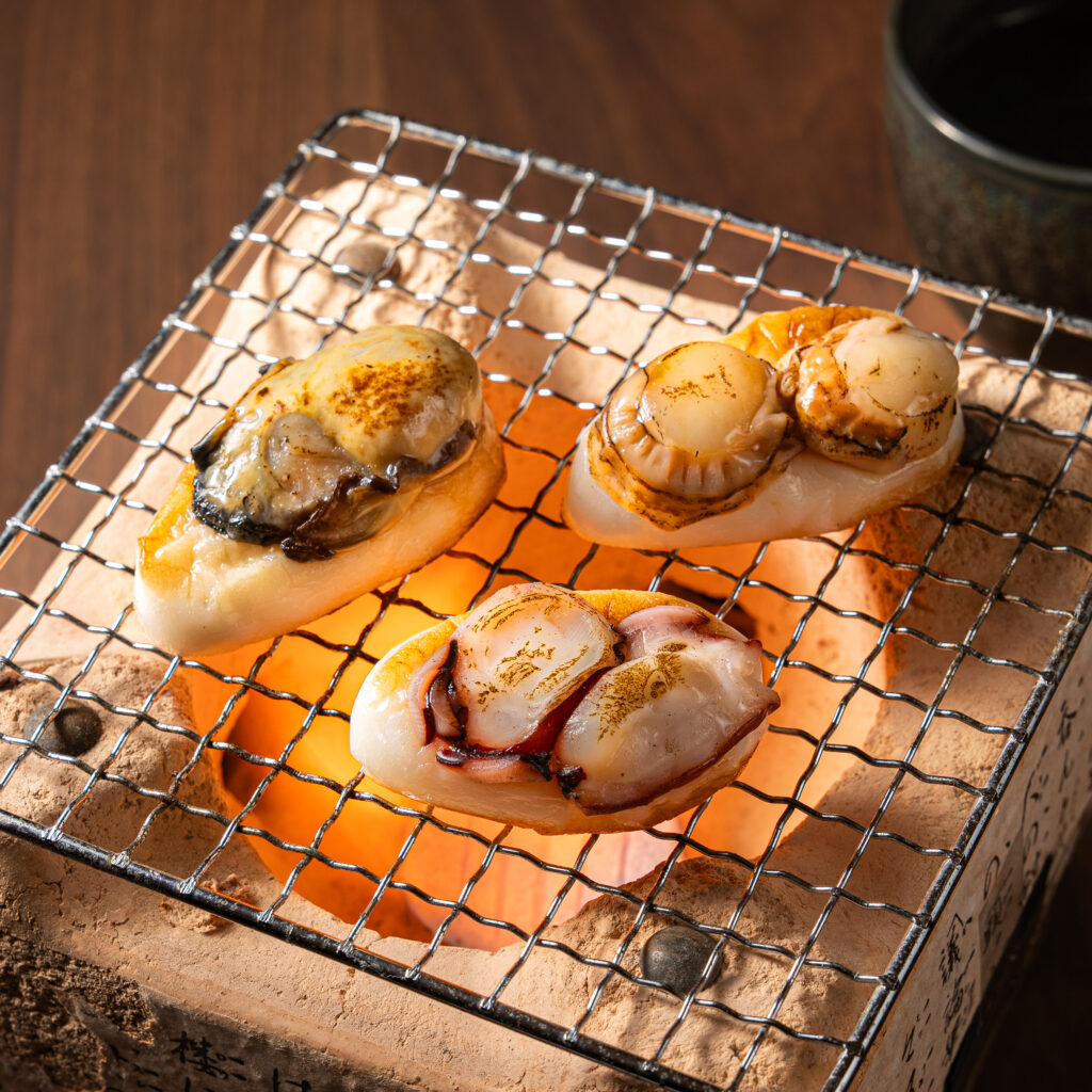 及善だからできる贅沢な一手間。炙り笹 タコ・カキ・ホタテをご賞味ください。